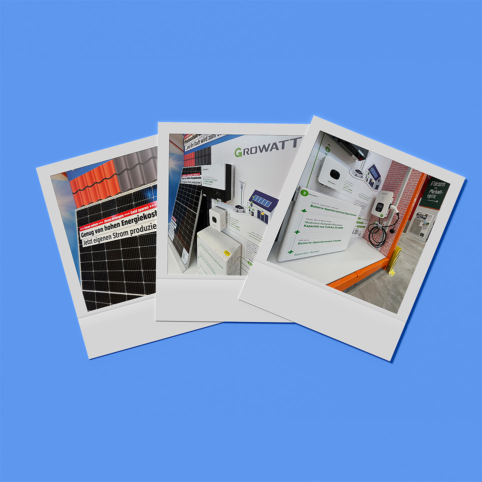 Und hier kommen wir ins Spiel: Für die Bauhaus AG entwickeln wir seit 2020 die Bereiche Photovoltaik-Pakete, Klima- und Heizungsprodukte, zahlreiche Regalmeter welche die Produkte für Kunden attraktiv inszenieren und Informationen vermitteln sollen. Anforderungen wie modulare Kompatibilität in den Hochregalen oder On-Demand-Produktion für die mehr als 160 Fachcentren wurden bei uns gebündelt und sorgen für stetigen Nachschub in den Märkten.