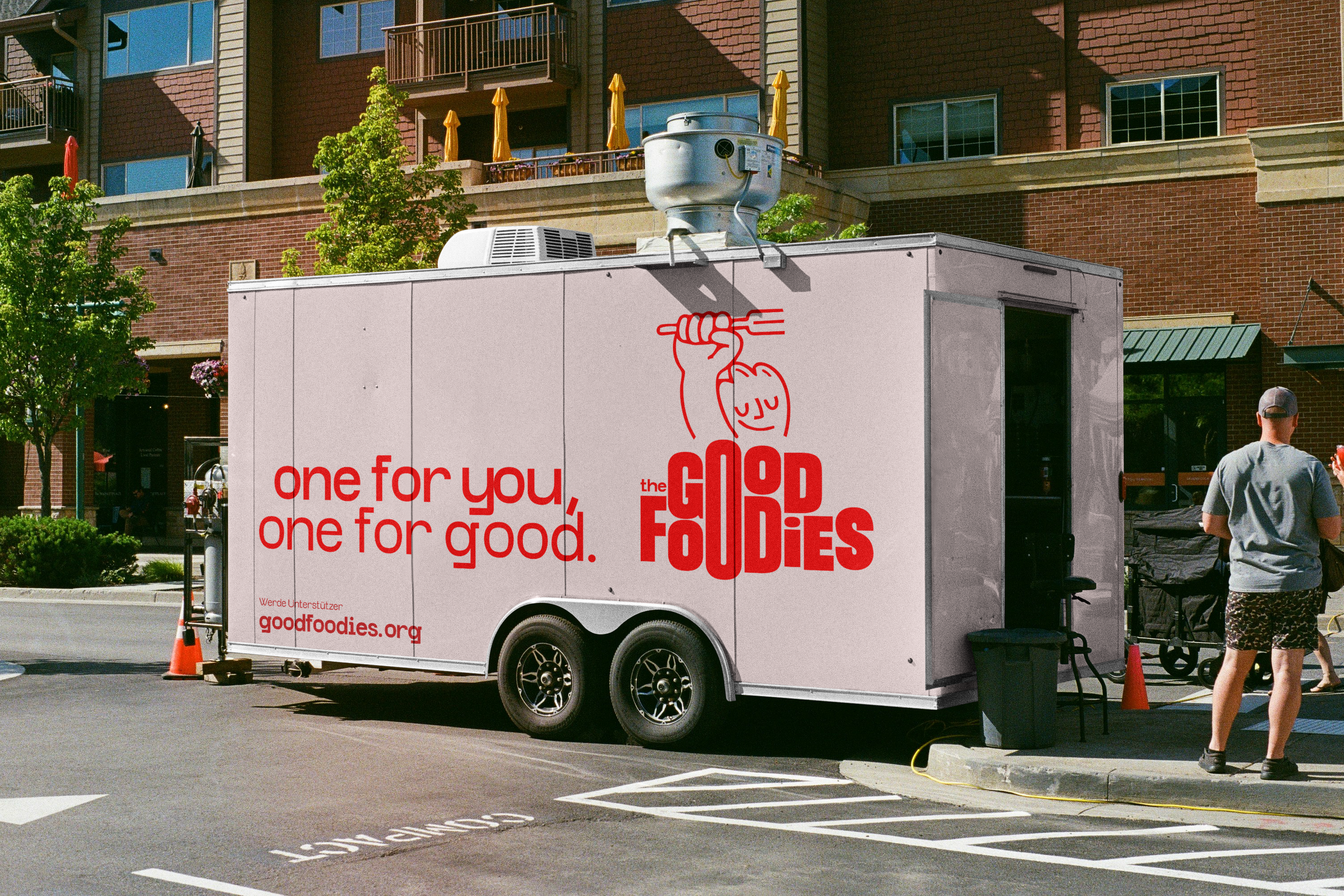 Wir haben diese Initiative pro bono unterstützt und eine Marke geschaffen, welche der Bewegung einen visuellen Halt gibt. Revolution an der Kulinarikfront und Aufmerksamkeit für gemeinnützige Aktionen. Die GoodFoodies sind ab sofort knallig, lecker und stehen mit dem neu geschaffenen Claim für die Gute Sache ein: One for you, one for good.