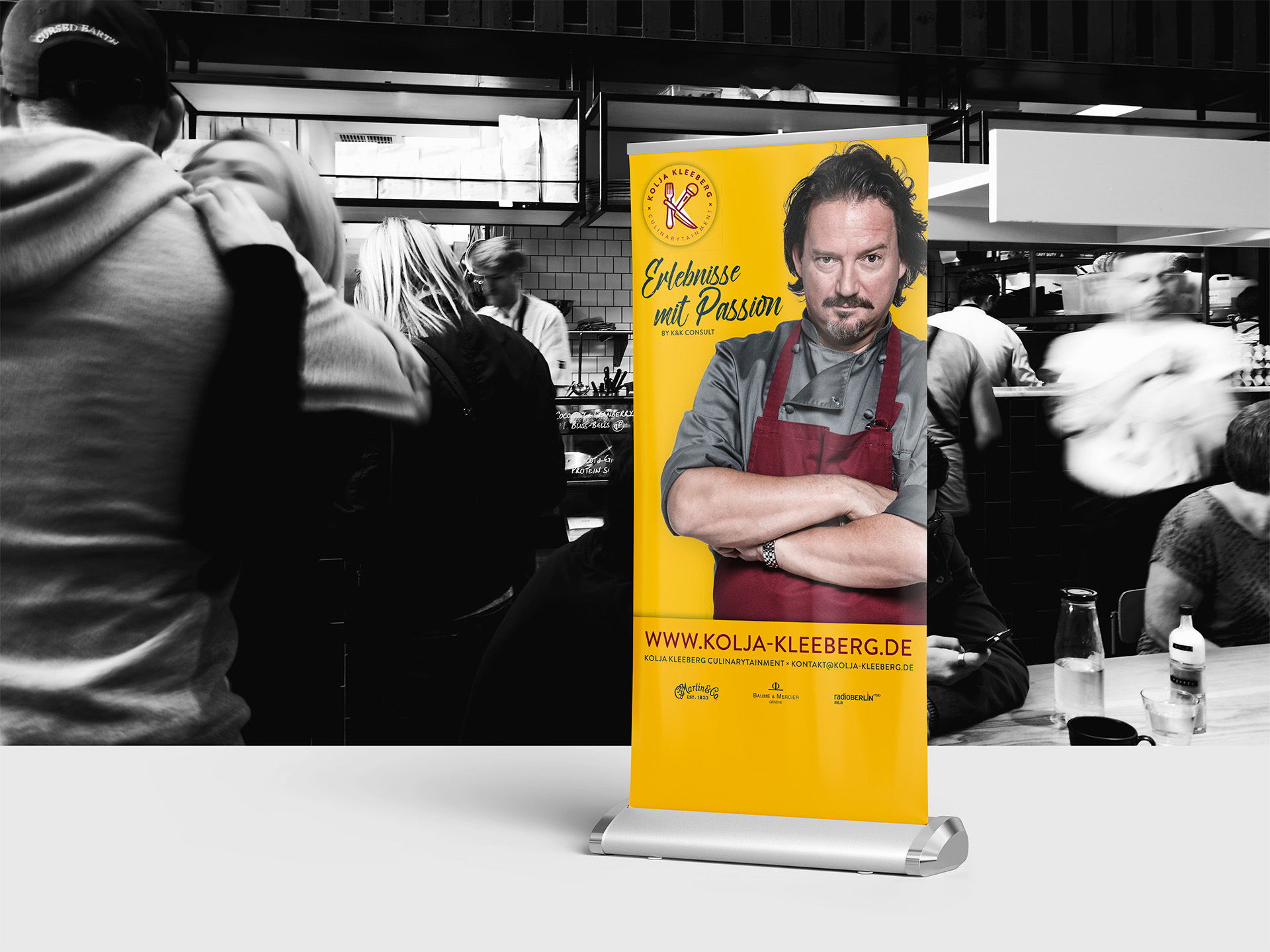 Wenn Kulinarik zur Bühne wird und Design mehr ist als eine bloße Form, entsteht etwas Besonderes: eine eigene Welt, ein Erlebnis – eine Marke. Für Kolja Kleeberg, Sternekoch (1997-2016), Musiker und geborener Entertainer, durften wir die Bühne für seine Koch- und Gesangeskunst gestalten. Sozusagen das Amuse-Bouche bevor er an den Töpfen richtig loslegt.