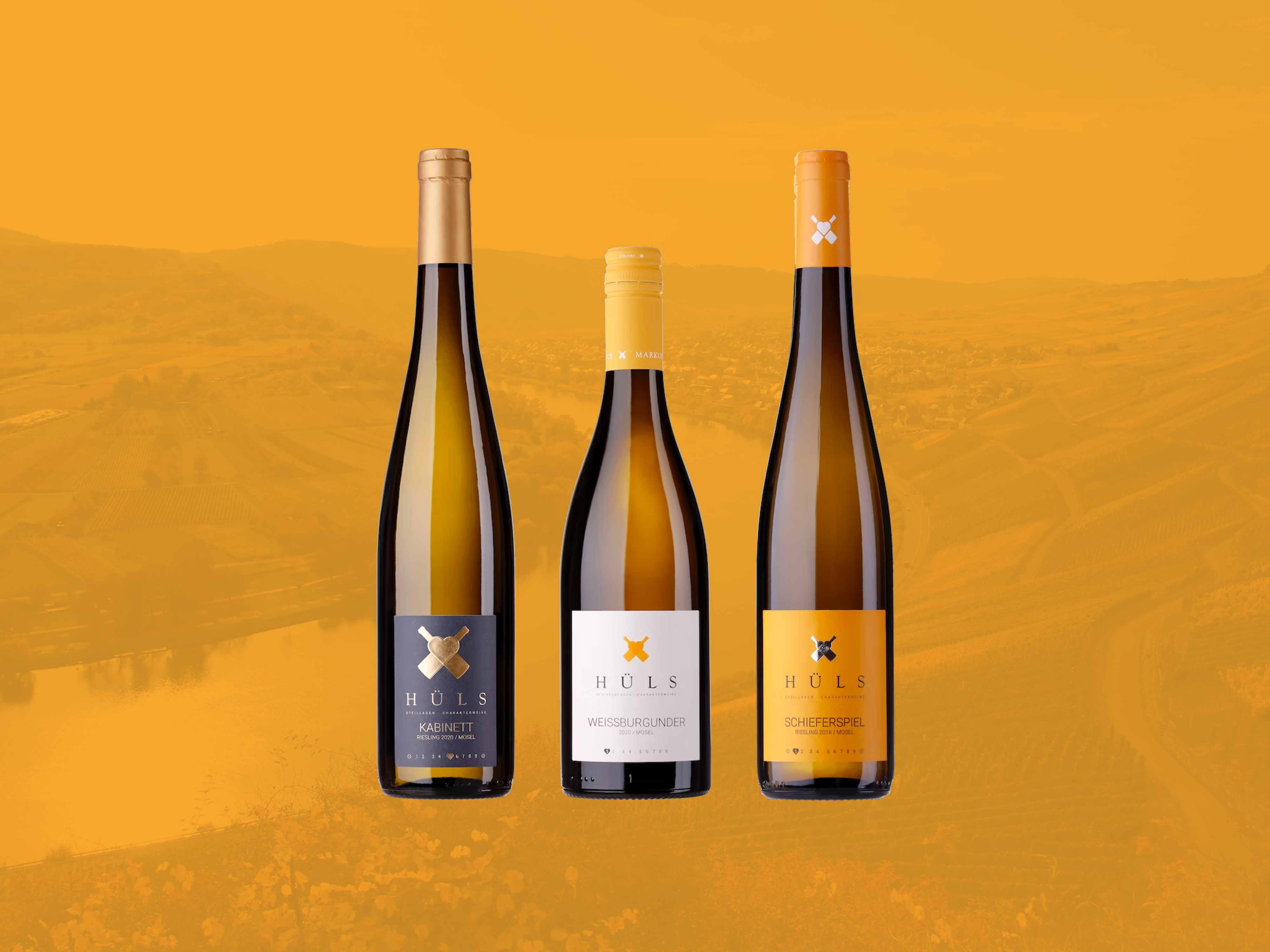Auch im Regal findet das Design der modernen Ausstattung seinen Platz und lässt so manchen Nachbarn im Weinregal verblassen. Jung, frech und dennoch der Mosel-Tradion verbunden folgt die Ausstattung der Flaschen dem modernen Geist der Hülsweine aus Kröv an der Mosel